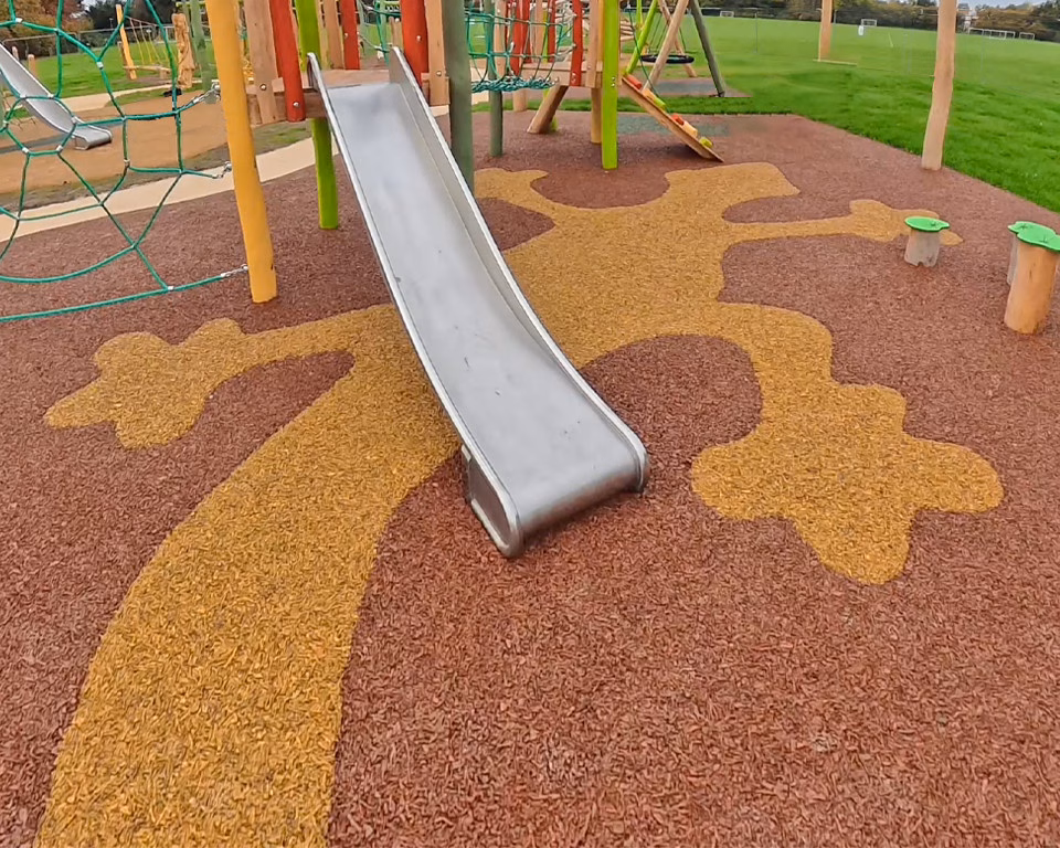 Varatek installs Safamulch™—a bonded rubber safety surface that can be laid directly onto a geotextile Terram over grass or soil, eliminating the need for ground preparation.